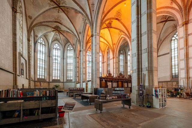 Bereits 1407 trat Zwolle dem Hanseverbund bei und erlebte ein goldenes Zeitalter. Noch heute prägt der sternförmige Grachtengürtel die Innenstadt. Von den einst sieben Stadttoren ist das imposante Sassenpoort aus dem Jahr 1409 erhalten – ein echtes Wahrzeichen der Stadt. Besuchern der Stadt sticht ebenfalls die Pfefferbüchse („Peperbus“) ins Auge: dieser 75 Meter hohe Turm verdankt seinen Namen seiner Form. Eine Buchhandlung, Brasserie und Ausstellungsraum in einem: Van der Velde in de Broeren befindet sich in der eindrucksvollen Broerenkerk. Mit einer großen Auswahl an Büchern und Zeitschriften fällt es schwer, hier mit leeren Händen nach Hause zu gehen.