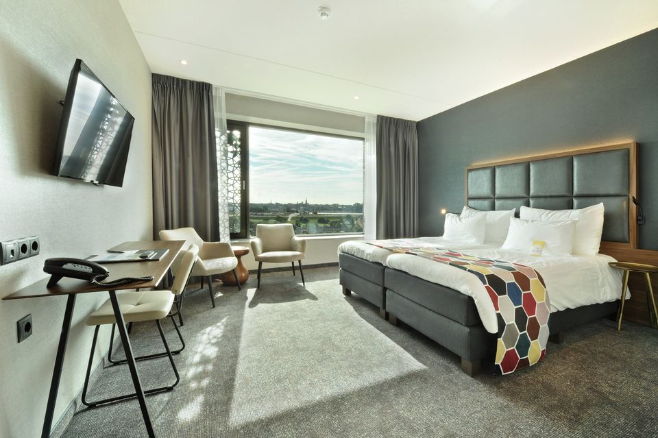 Das historische, aber pulsierende Stadtzentrum von Nimwegen ist etwa 1,5 Kilometer entfernt. Das Hotel verfügt über 116 sehr moderne Zimmer, ein großes Restaurant mit Live-Cooking-Bereich, eine gemütliche Hotelbar sowie Wellness- und Fitnessraum. Parkgelegenheit besteht im hoteleigenen Parkhaus.