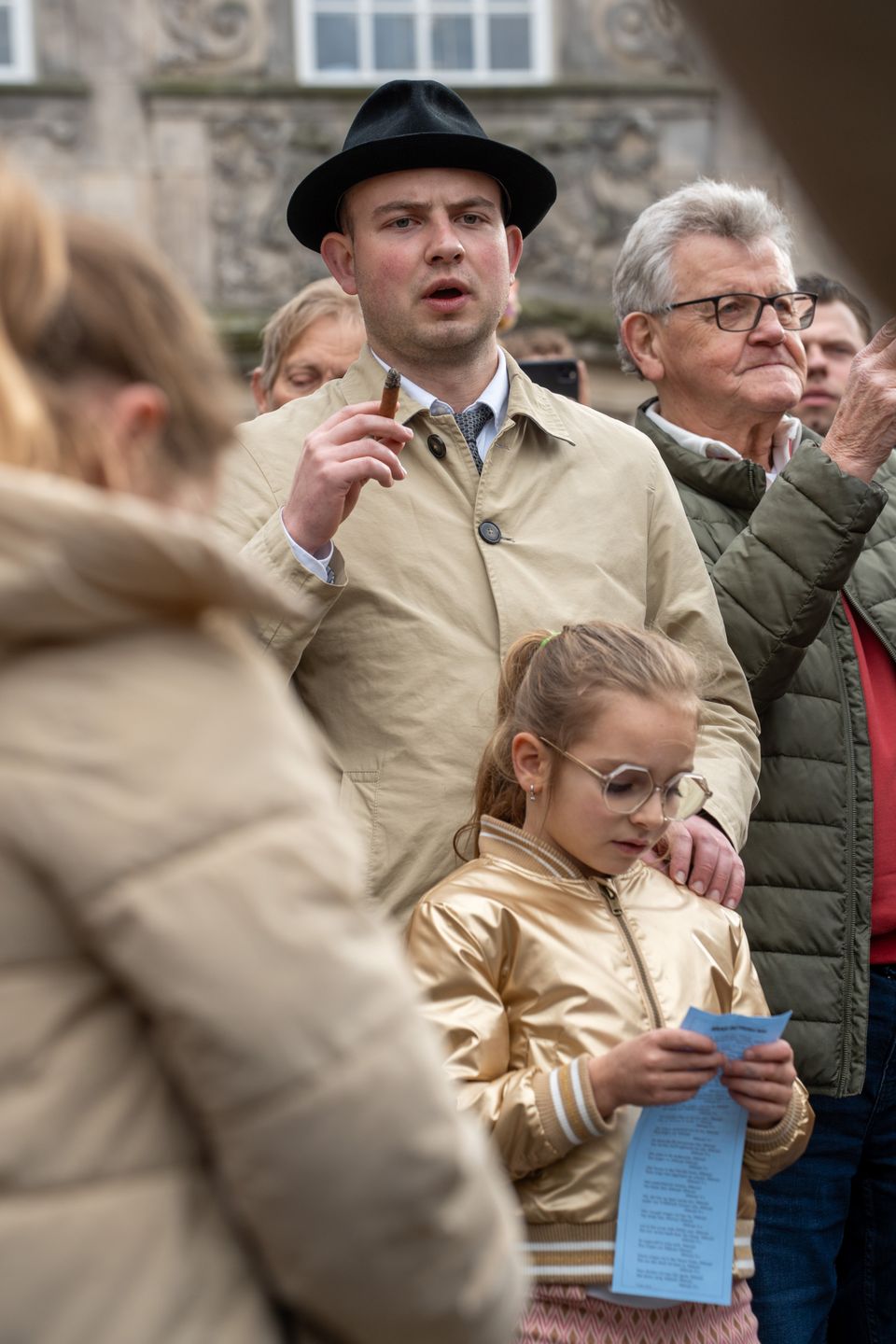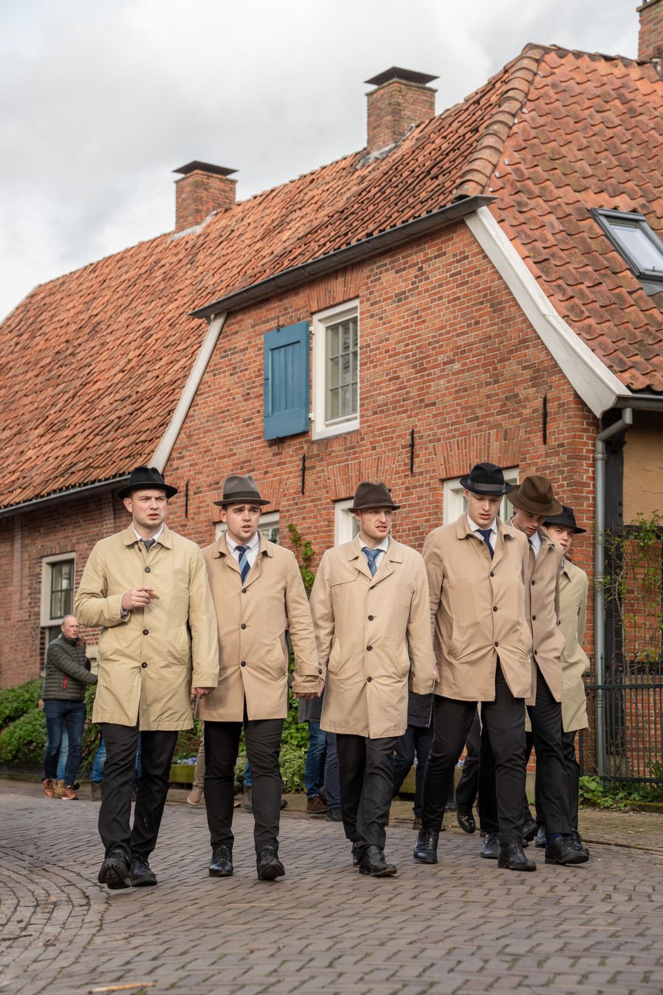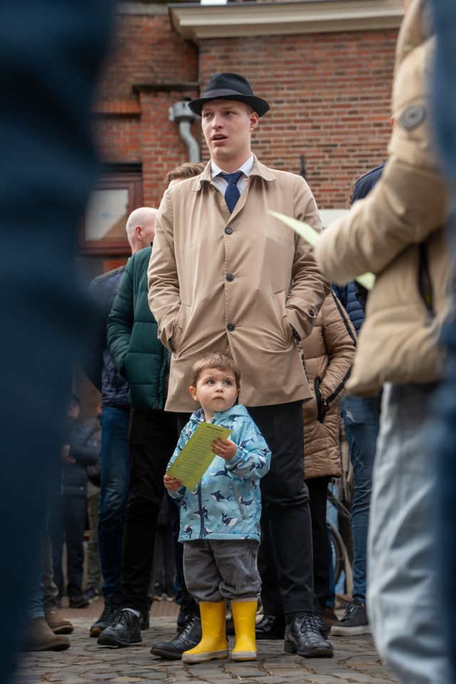 Nach und nach reiht sich die gesamte Gemeinde - Jung und Alt - ein, so dass eine lange, gewundene Kette von Menschen entsteht. Während sie singen, marschieren sie durch die Straßen und Gassen von Ootmarsum, vorbei an Steilhängen und charakteristischen Gebäuden. Der Marsch endet auf dem Marktplatz, wo die beiden Osterlieder ein letztes Mal gesungen werden.