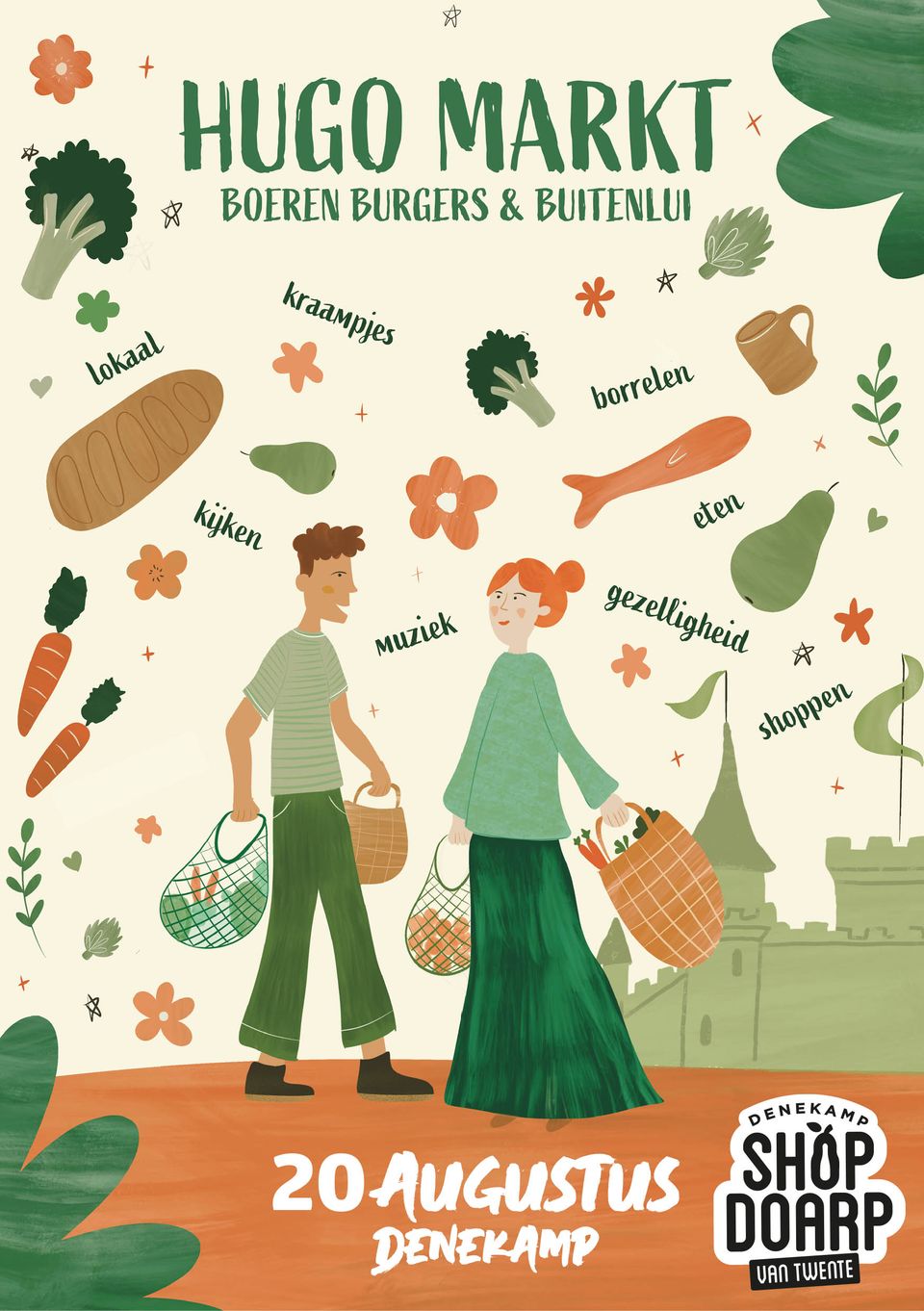 Im Dorf gibt es viele Dutzend Stände mit einer Vielzahl von Waren und Sie finden auch eine Reihe von Ständen mit köstlichen regionalen Produkten aus Twente. Auch für Kinder ist gesorgt: Hüpfburgen, Schminken und Basteln unter Anleitung der Pfadfinderinnen und Pfadfinder.