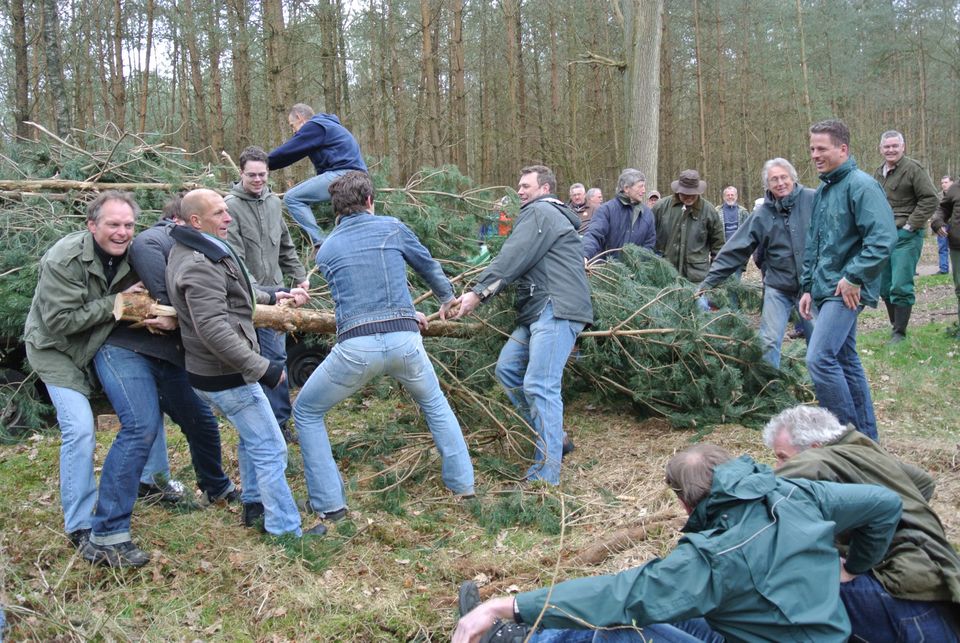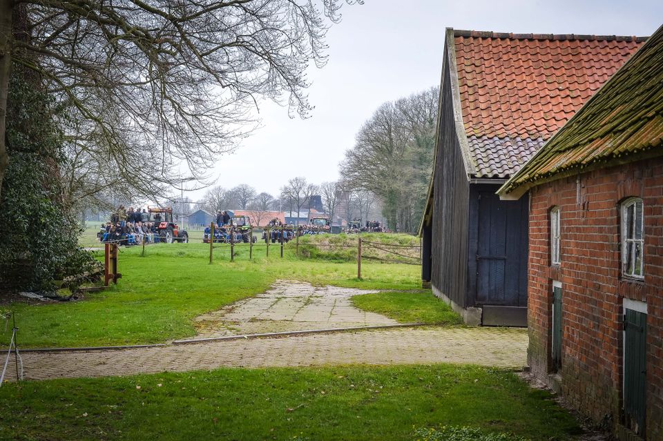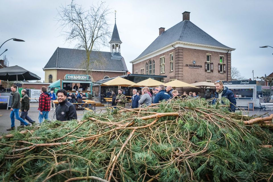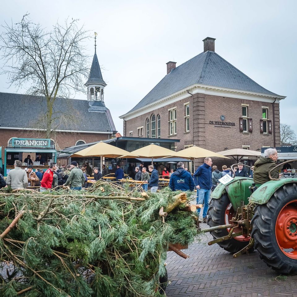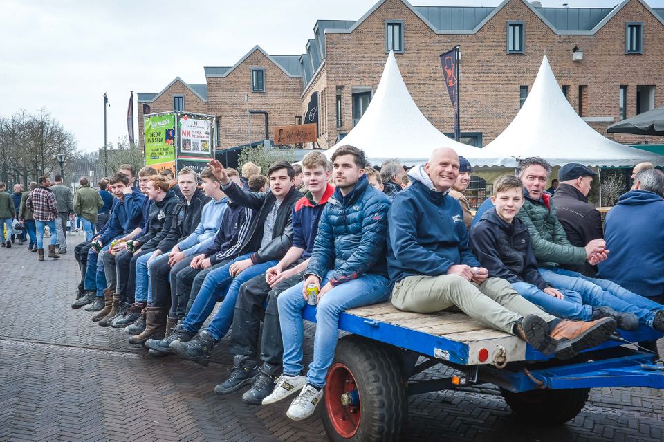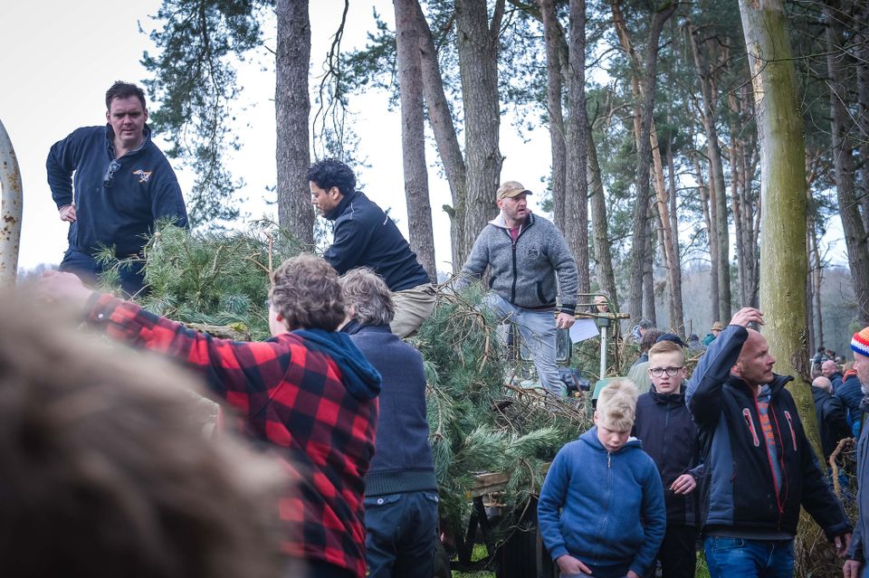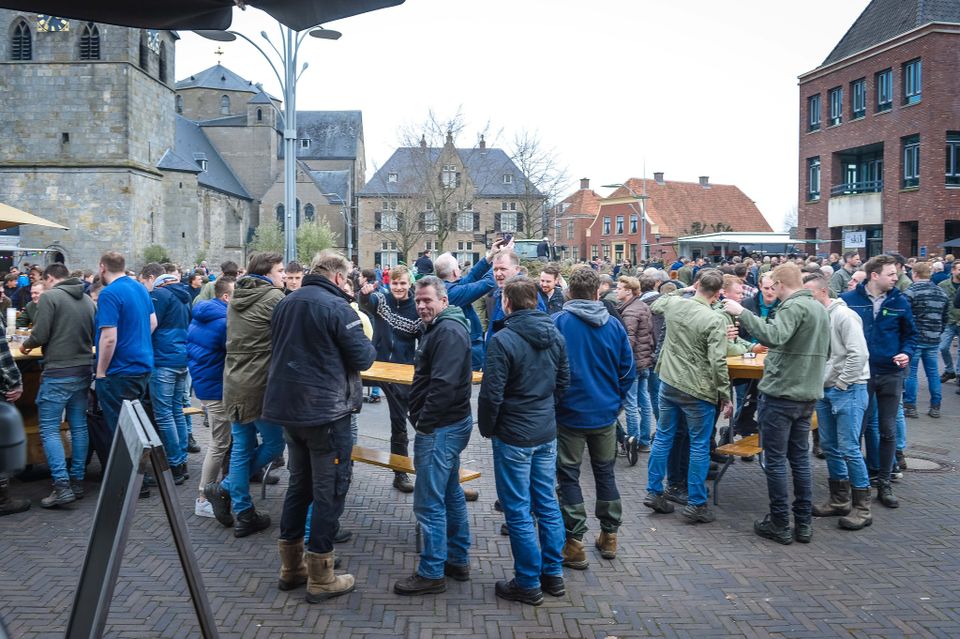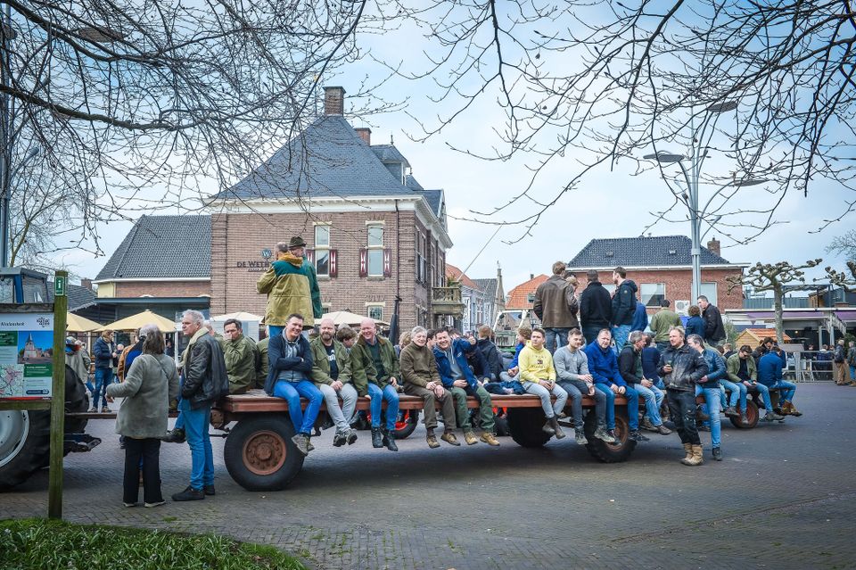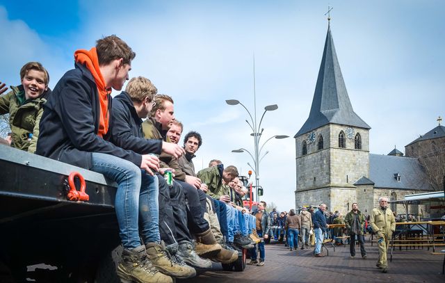 Holen von Osterholz für das Osterfeuer in Denekamp. Abfahrt um 13 Uhr vom Nicolaasplein. Um 12.45 Uhr versammeln sich die ersten jungen Männer an der Sint Nicolaaskerk.