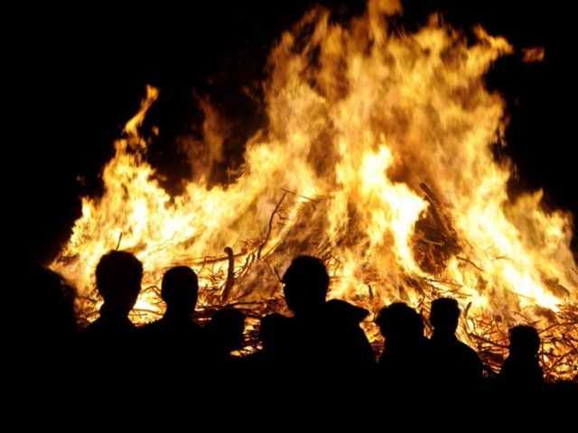 Gegen 22 Uhr erreichen Sie das letzte Osterfeuer in Ootmarsum.