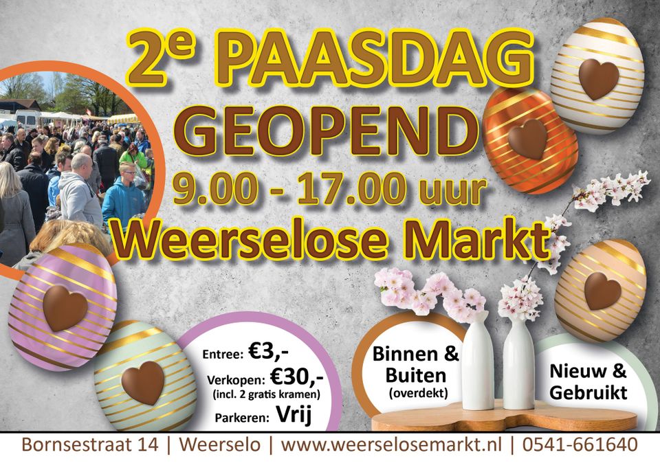 Jedes Jahr gibt es mehrere zusätzliche Märkte, die während der Feiertage stattfinden. An den zusätzlichen Markttagen ist der Weerselose Markt großartig; es gibt Attraktionen wie: Musik- und Mopedbands, Künstler und dergleichen. Jeder Markt ist anders. Wiederum reagieren Hunderte von Gelegenheitsmarktbesuchern auf Ihren freien Tag.