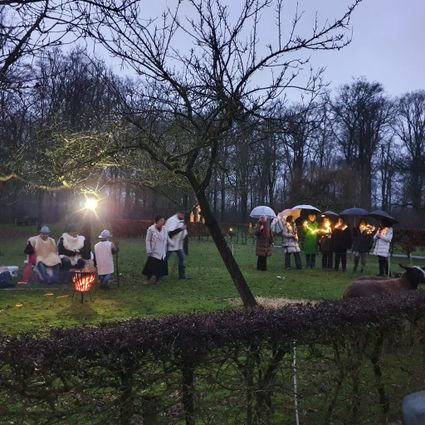 Rundgang durch das Dorf mit anderen Bläsergruppen