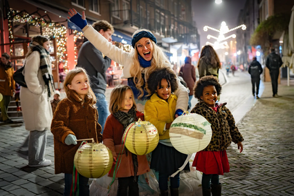 Magische Atmosphäre in der Innenstadt von Nijmegen: Erlebe Lichtinstallationen, die Winterwunder-Parade, Straßentheater, den Laternenumzug, die Rollschuhbahn und mehr.
